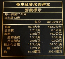 花蓮糙米、海藻糖、麥芽、糖、棕櫚油(非氫氧化植物油)、臺灣紅藜、海鹽