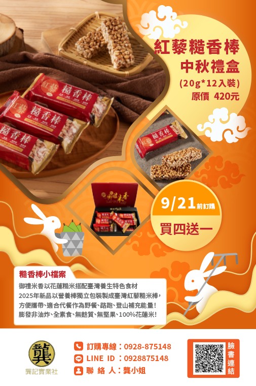2025年新品以營養棒獨立包裝製成臺灣紅藜糙米棒,方便攜帶、適合代餐作為野餐、路跑、登山補充能量!