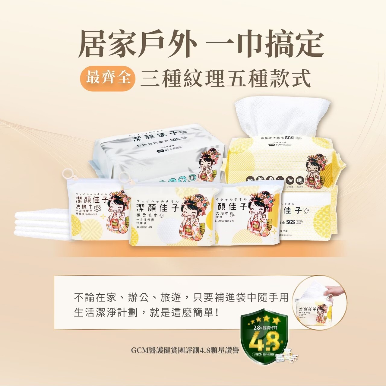 潔顏佳子珍珠隨行巾|居家戶外全包組46折399免運