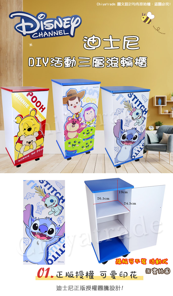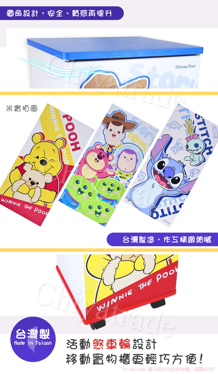 【百科良品】迪士尼Disney 玩具總動員-DIY活動三層滾輪櫃 活動櫃 置物櫃 收納櫃(正版授權台灣製)