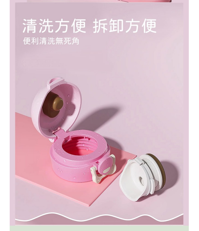 設計貼心:有優雅唇型飲水口,喝水不嗆口、不外溢,且一鍵開蓋,便於攜帶補水;採用廣口設計,沖泡、清洗都很方便;杯口與杯蓋嚴密貼合,搭配防打開鎖扣,密封防漏,外出攜帶無憂。