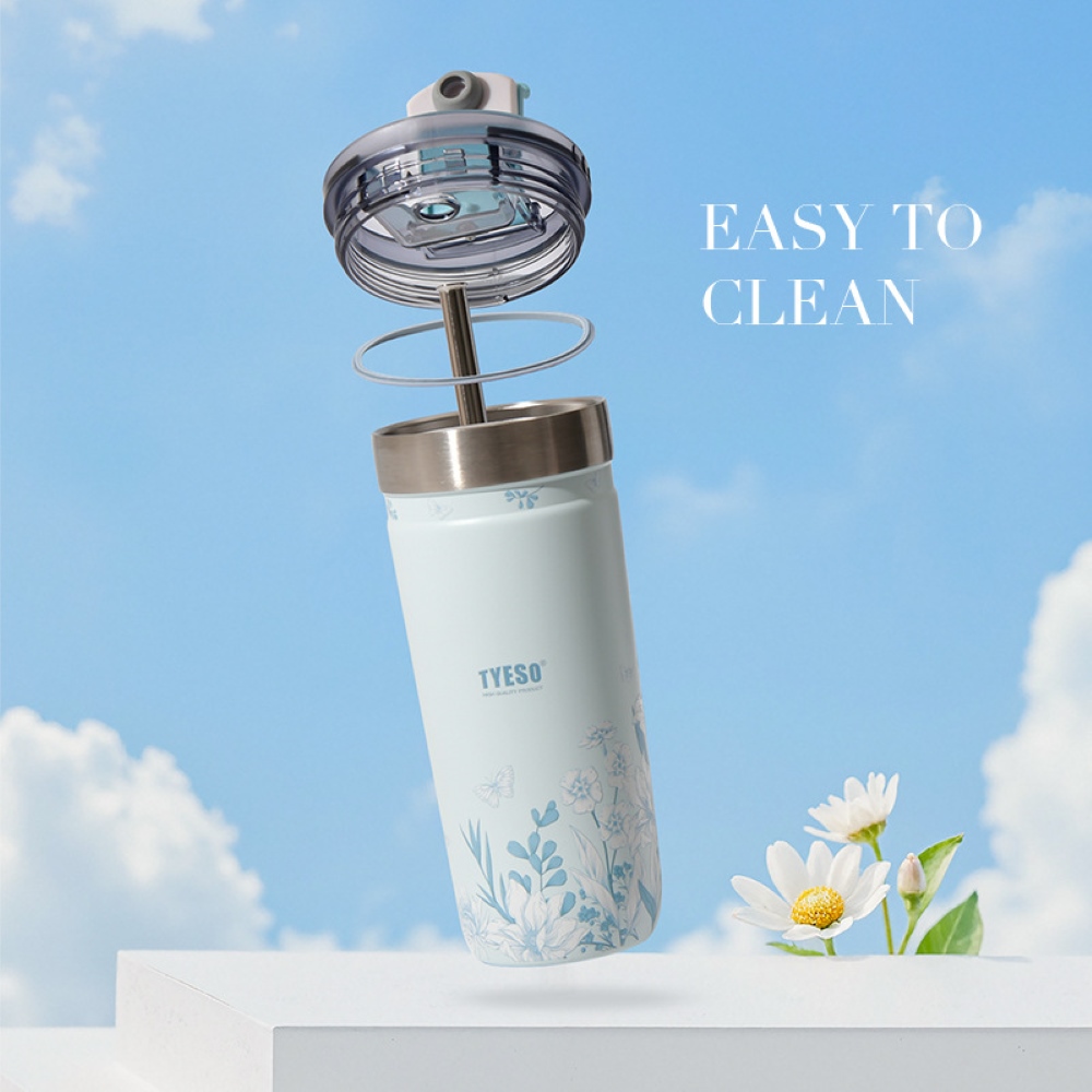 【H&R安室家】泰碩 TYESO 花卉系列304不鏽鋼吸管杯710ml(H42)