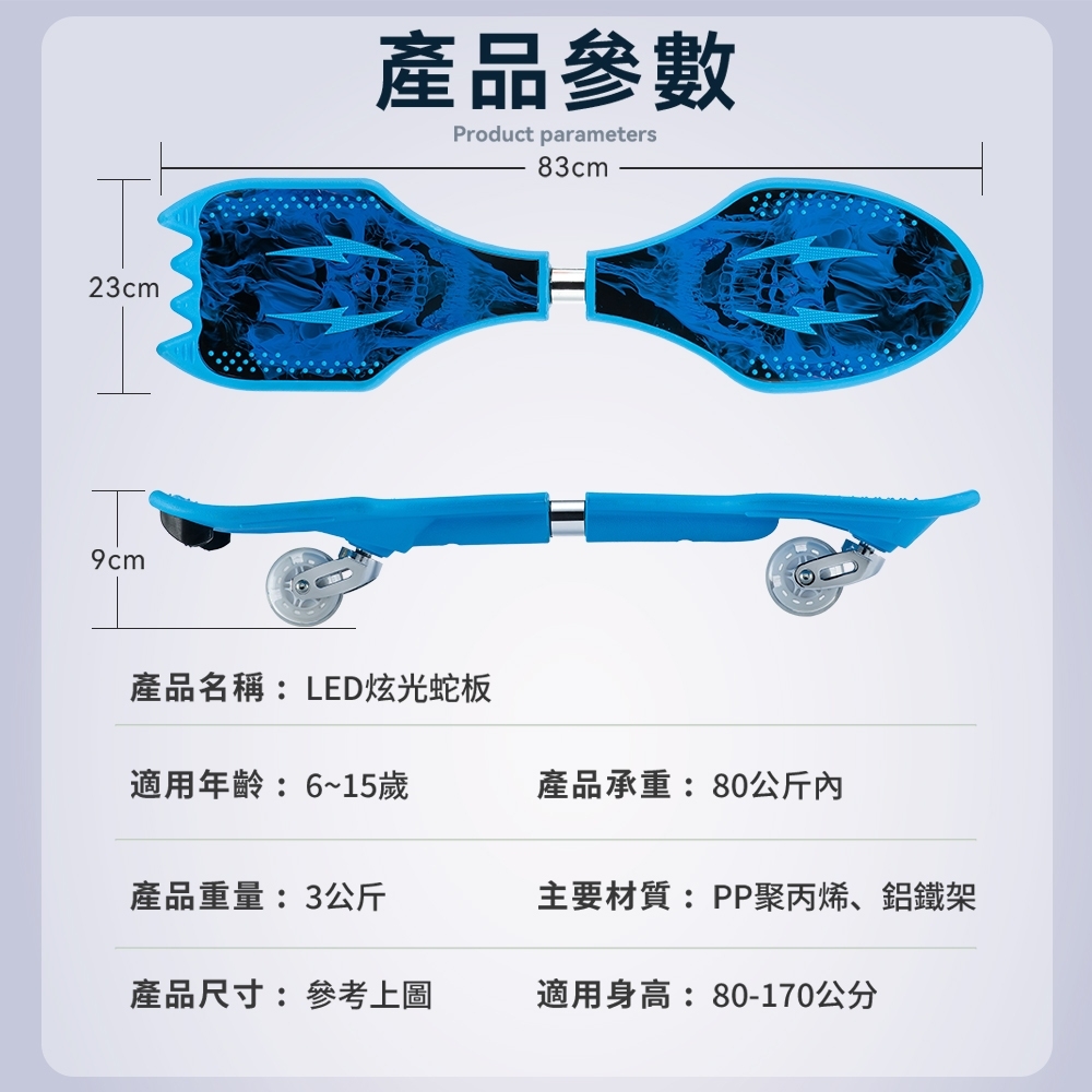 品名:火箭衝浪板/蛇板 尺寸:83(長)x23(寬)x9(高)