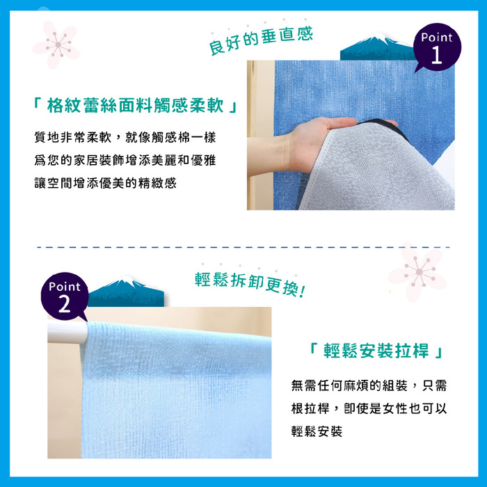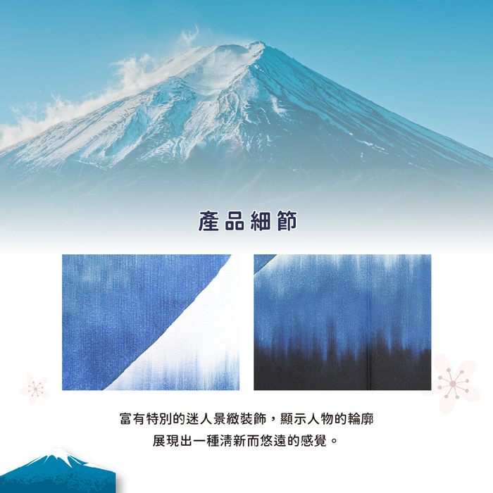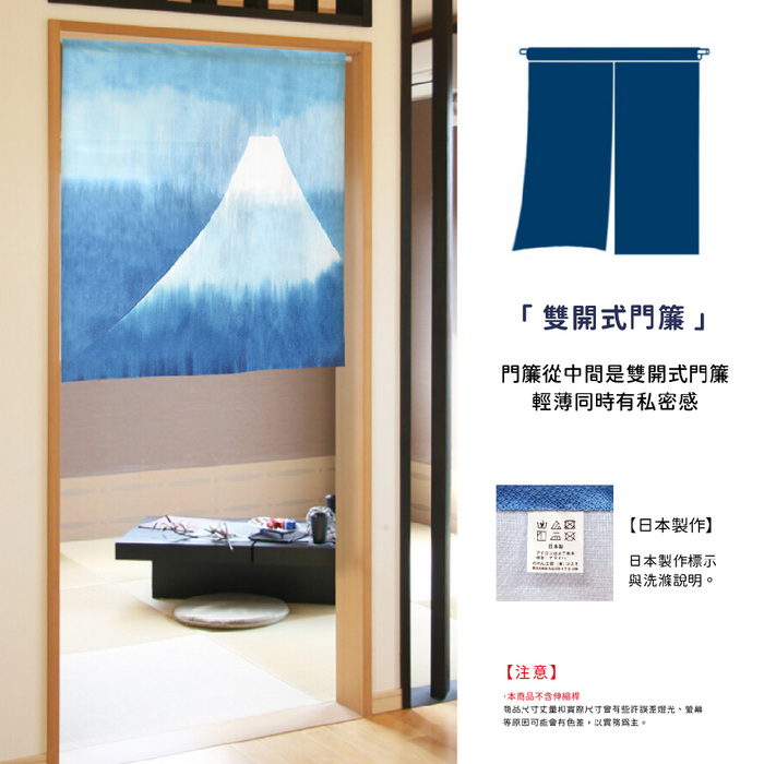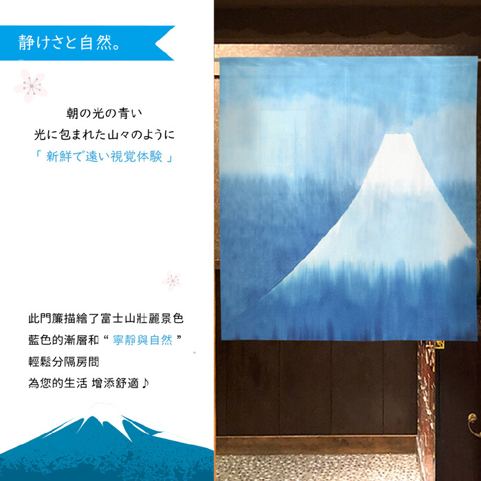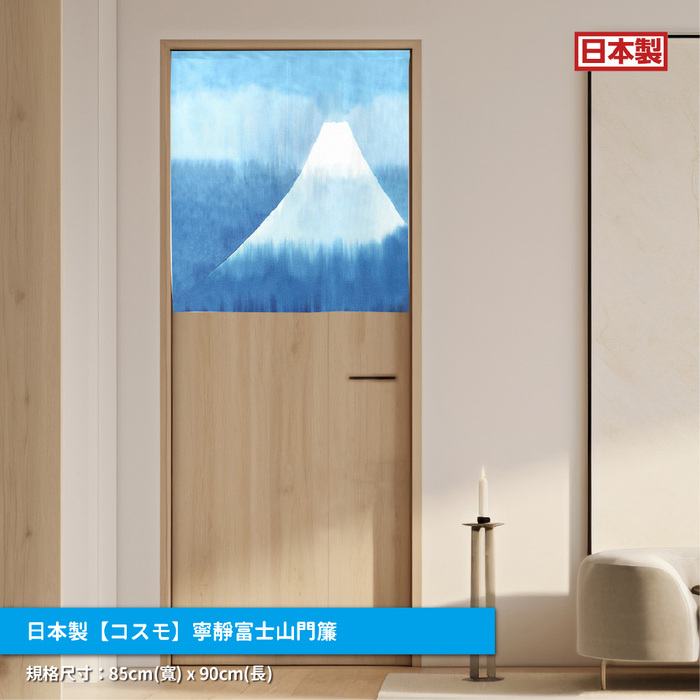 日本製【コスモ】中門簾《寧靜富士山》選りすぐりの和柄を集めた「特選和柄のれん」シリーズです。縁起物や季節の柄、美人画など様々な日本の文化を取り揃えました。お部屋やお店のインテリア、お土産物、贈り物などにぜひご活用ください。 這是「特選日本圖案窗簾」系列,精選日本圖案的集合。護身符、季節圖案、美女圖等各種日本文化元素應有盡有。可用於房間和商店的室內裝飾、紀念品、禮品等。 生產國:日本材質/成分:100%聚酯纖維包裝:獨立袋包裝尺寸:約85 公分(寬)x 90 公分(長)國際條碼:4943741997665出貨:門簾*1件清洗方式:可水洗、不可漂白、不可烘乾顏色:如圖,網頁產品因拍攝與各顯示器顯色不同關係,與實品略有差異, 此商品圖為參考用之情境圖示,產品內容以規格敘述內容為準適用:臥室門、廚房門、浴室門、衣櫥、玄關入口...等 【注意事項】伸縮桿需自備,商品內容為門簾本體並無附桿子