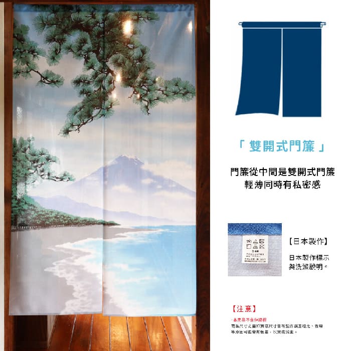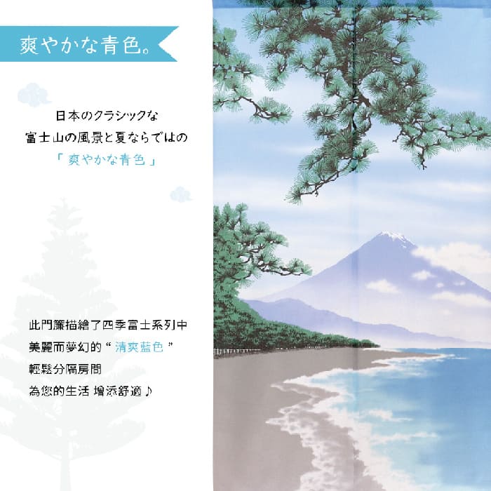 日本製【コスモ】長門簾《夏季富士山》自然にあふれた風景や外国の街並み、世界遺産などを取り揃えた『風景のれん』シリーズ。打ち寄せる波が神秘的と言われている「三保の松原」と富士山を描いた のれん。四季富士シリーズの夏。爽やかな夏を感じるデザインをお楽しみください。また、生地は市松柄レースを使用。柔らかい手触りと、人物などシルエットでわかるくらいのほど良い透け感があります。這是以拍打著波浪的神秘的「三保之松原」和富士山為主題的風景。四季富士系列的夏季富士山。享受這種設計帶來的清爽夏日感覺。布料由格子蕾絲製成。它觸感柔軟,具有良好的透明度,可以在人和其他物體的輪廓中看到。有一種通透感。這種織物觸感柔軟,透明度很好,可以在人物和其他物體的輪廓中看到。生產國:日本材質/成分:100%聚酯纖維包裝:獨立袋包裝尺寸:約85 公分(寬)x 150 公分(長)國際條碼:4943741000778出貨:門簾*1件清洗方式:可水洗、不可漂白、不可烘乾顏色:如圖,網頁產品因拍攝與各顯示器顯色不同關係,與實品略有差異, 此商品圖為參考用之情境圖示,產品內容以規格敘述內容為準適用:臥室門、廚房門、浴室門、衣櫥、玄關入口...等【注意事項】伸縮桿需自備,商品內容為門簾本體並無附桿子