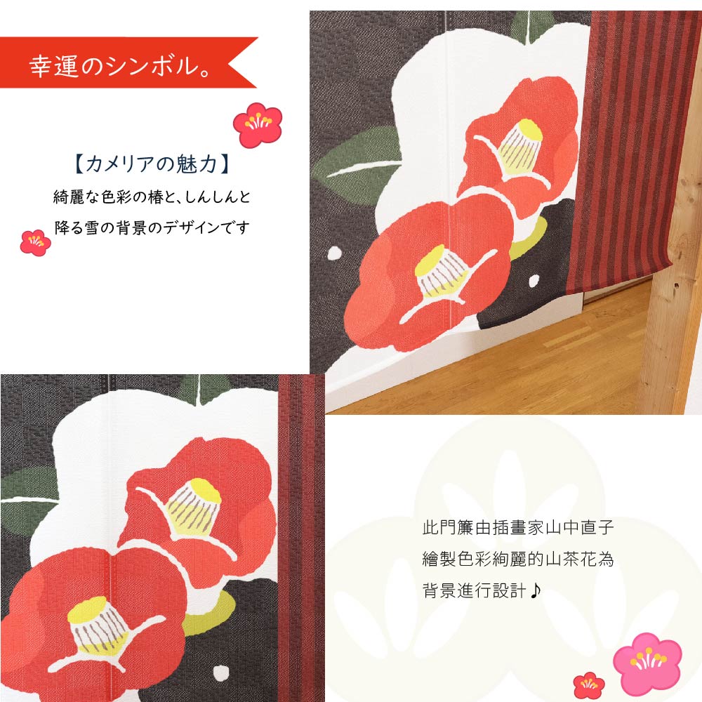 日本製【コスモ】短門簾《山茶花》縁起物や季節の柄、美人画など様々な日本の文化を取り揃えました。お部屋やお店のインテリア、お土産物、贈り物などにぜひご活用くださいイラストレーター『山中奈緒子』による四季折々の草花。【冬】は綺麗な色彩の椿と、しんしんと降る雪の背景のデザインです。我們有各種各樣的日本文化物品,包括幸運符、季節圖案和美女肖像。請隨意將其用作房間或商店的室內裝飾、紀念品或禮物。插畫家山中直子 (Naoko Yamanaka) 繪製的四季花卉和植物。以色彩絢麗的山茶花和飄落的雪花為背景進行設計。請用於您的房間、商店、禮品生產國:日本材質/成分:100%聚酯纖維包裝:獨立袋包裝短門簾尺寸:約85 公分(寬)x 45 公分(長)J13-06-45B國際條碼:4943741276043出貨:門簾*1件清洗方式:可水洗、不可漂白、不可烘乾顏色:如圖,網頁產品因拍攝與各顯示器顯色不同關係,與實品略有差異,此商品圖為參考用之情境圖示,產品內容以規格敘述內容為準適用:臥室門、廚房門、浴室門、衣櫥、玄關入口...等【注意事項】伸縮桿需自備,商品內容為門簾本體並無附桿子