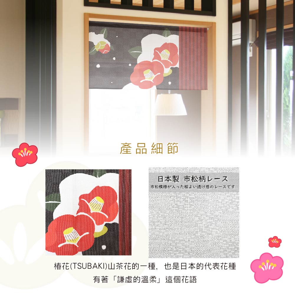 日本製【コスモ】短門簾《山茶花》黑