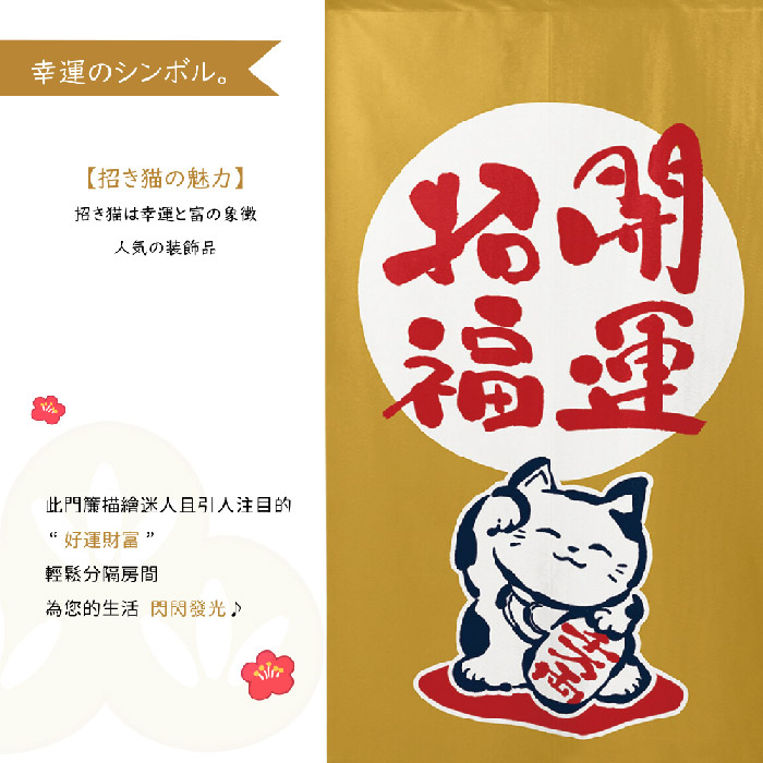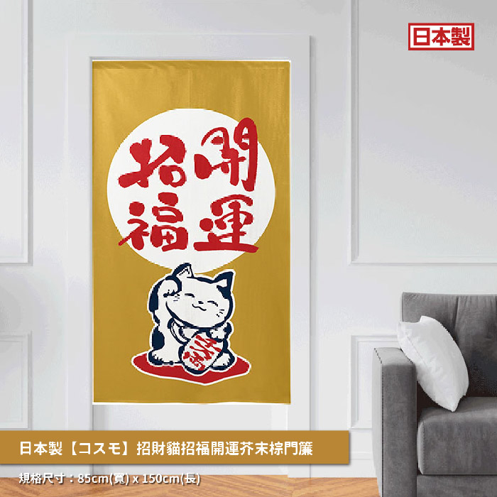 日本製【コスモ】長門簾《招財貓招福開運》芥末棕