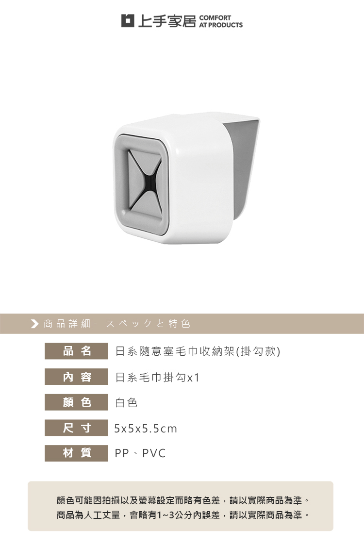 這款日系毛巾塞直接貼在磁磚或櫥櫃門片上,抹布一塞就能固定。免打洞免掛勾,不用另外準備毛巾架,手濕濕也能隨手塞入,整齊又省空間。黏貼穩固、防水不易脫落,是小空間整理的好幫手。