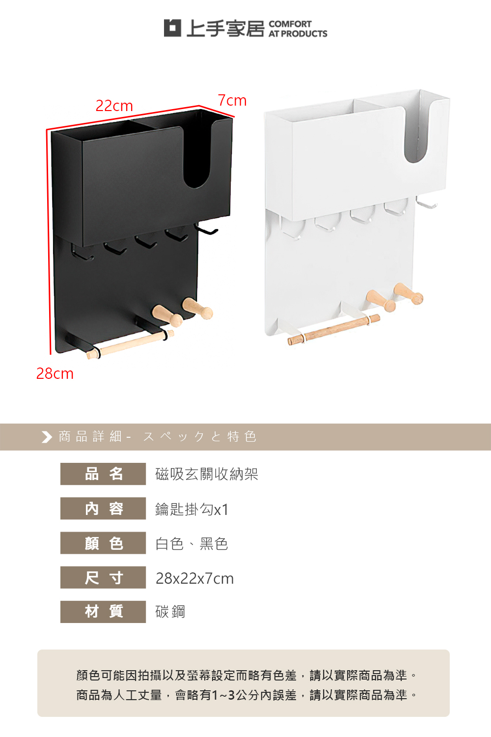 ⚠ 溫馨提醒: 建議安裝於平整金屬門片或適合磁吸的表面,以確保固定效果。 尺寸為人工測量,可能略有 1–3 公分誤差,請以實際商品為準。