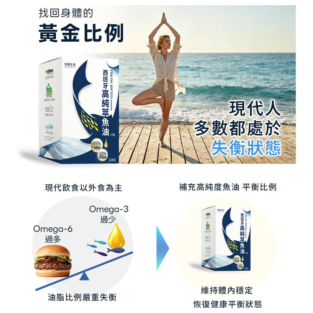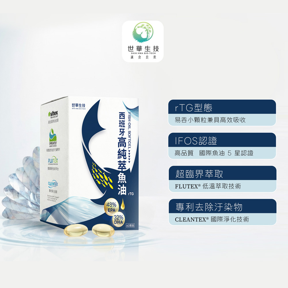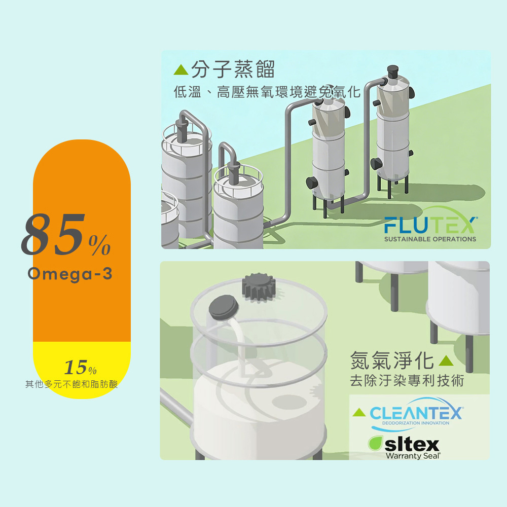 魚油 ( 含Omega-3 85%、EPA 48%、DHA 32%、維生素E(抗氧化劑)) 膠囊成分:明膠、甘油、純水
