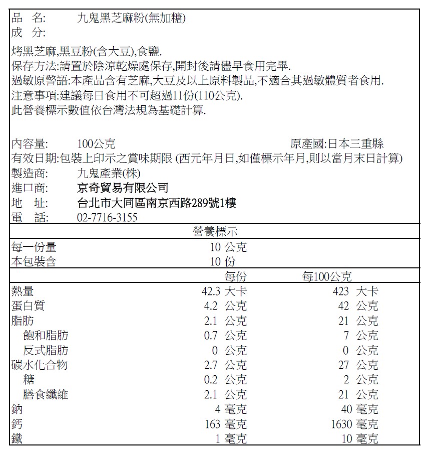 ◎Brand:九鬼 ◎Specifications: 100g克 x 1 x 1PC包