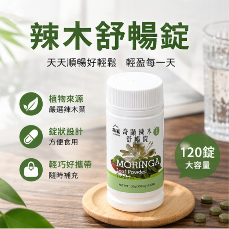 奇蹟辣木MORINGA 它也被稱為奇蹟樹,它是一種含有90多種營養素 和超過46種抗氧化劑的 超 級 食 物!!! 辣木不僅全株可食,「辣木葉」中更含有豐富的維生素 B 群、 A、C,礦物質如鉀、鈣、鐵、鎂、硒、鋅,以及多酚類和類黃酮等抗氧化物。此外,辣木還具有人體無法自行製造,須藉由飲食才能攝取到的其中八種必需胺基酸,也是素食者補充蛋白質的優良選擇之一。奇蹟 辣木舒暢錠採用辣木葉粉+綜合消化分解酵素+綜合蔬果酵素粉,促進腸道蠕動,使糞便比較柔軟而易於排出。維持消化道機能,改變細菌叢生態,營養價值高,通過SGS檢驗無重金屬、無農藥殘留,是全家大小養生保健的好產品!※全素可食,素食者的最佳營養補給!