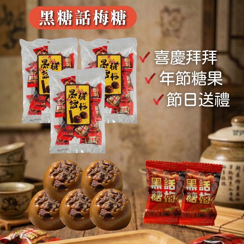 年貨大街 過年必備零食糖果 過年嘴饞年糖 復刻懷舊糖果 黑糖話梅堂 125g [3包免運組]