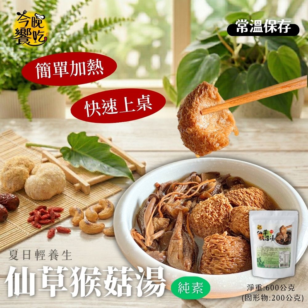 常溫湯品 火鍋湯底 料理湯底 團購夯品 純素猴頭菇湯底600g(固形物200g)(仙草/四神)[口味任選10包免運]