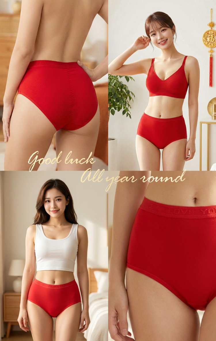 【伊柔 EVEROY】95%純棉高腰紅內褲 3D立體提臀 M-XL D500