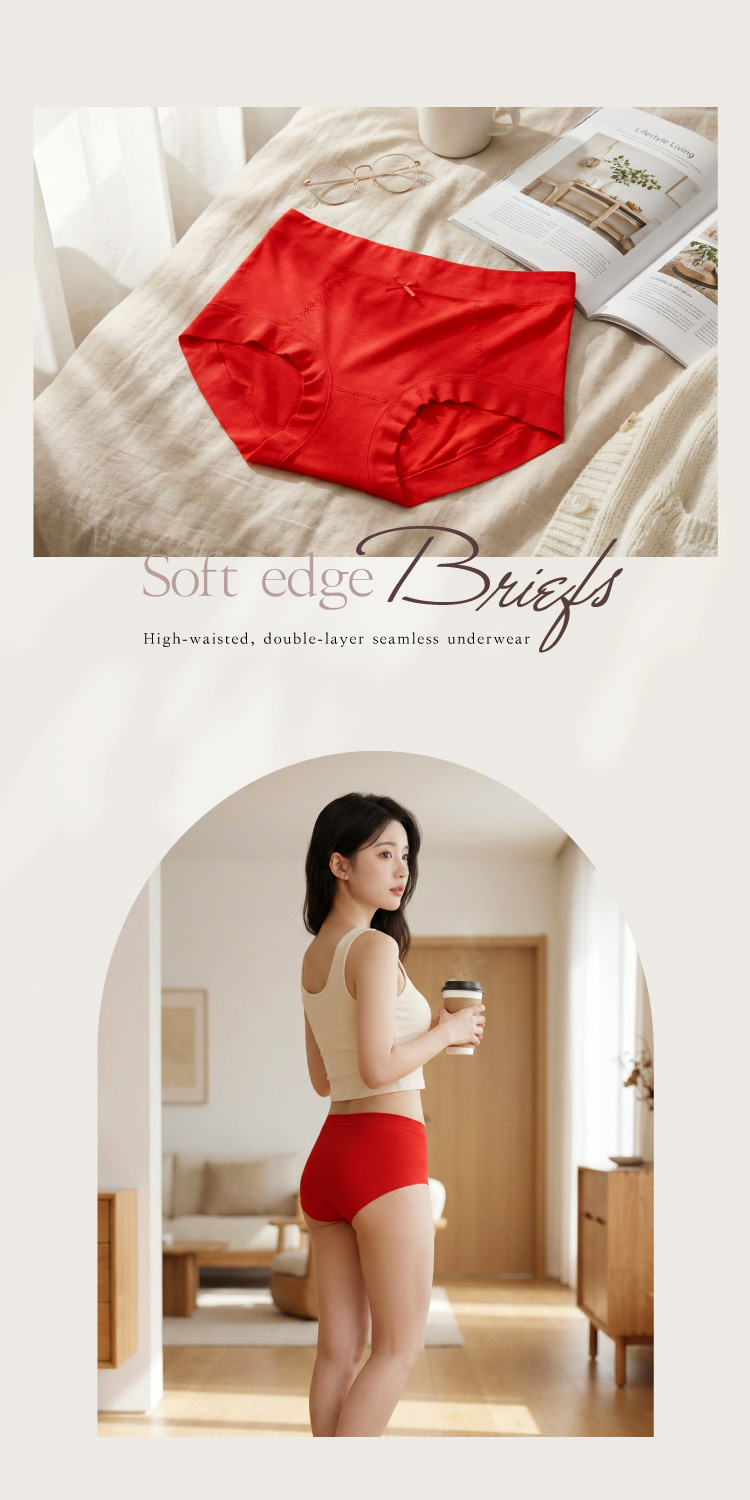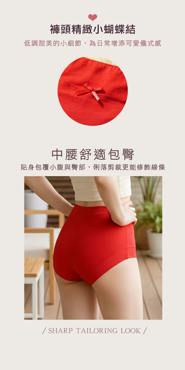 【伊柔 EVEROY】棉柔無痕收邊中腰包覆紅內褲|舒適包臀 M-XL適穿 W069