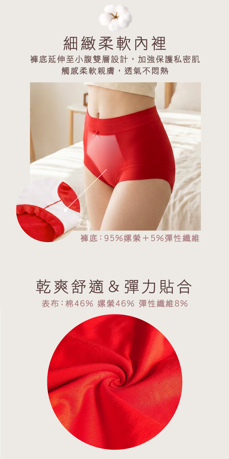 加大私密呵護:褲底雙層面料,親膚透氣不悶熱