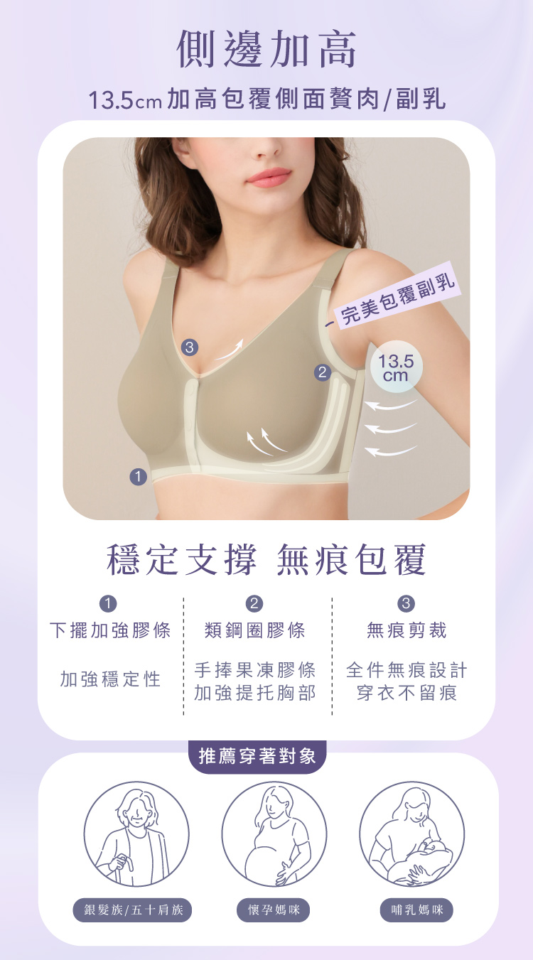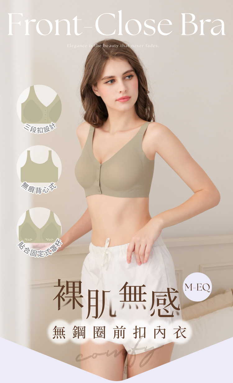 【伊柔 EVEROY】 裸肌無感無鋼圈前扣哺乳內衣 M-3XL(EQ)|無痕包覆.加大尺碼 W031-86 酪梨綠