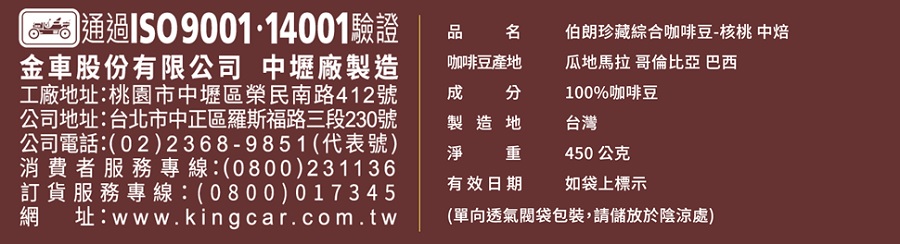 ◎Brand:伯朗 ◎Specifications: 450g克 x 1 x 1Bag袋
