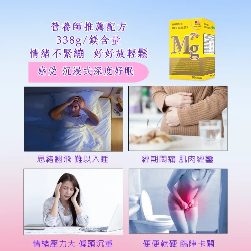 ☆ 綜合7種鎂元素、緩時吸收、不刺激不拉稀