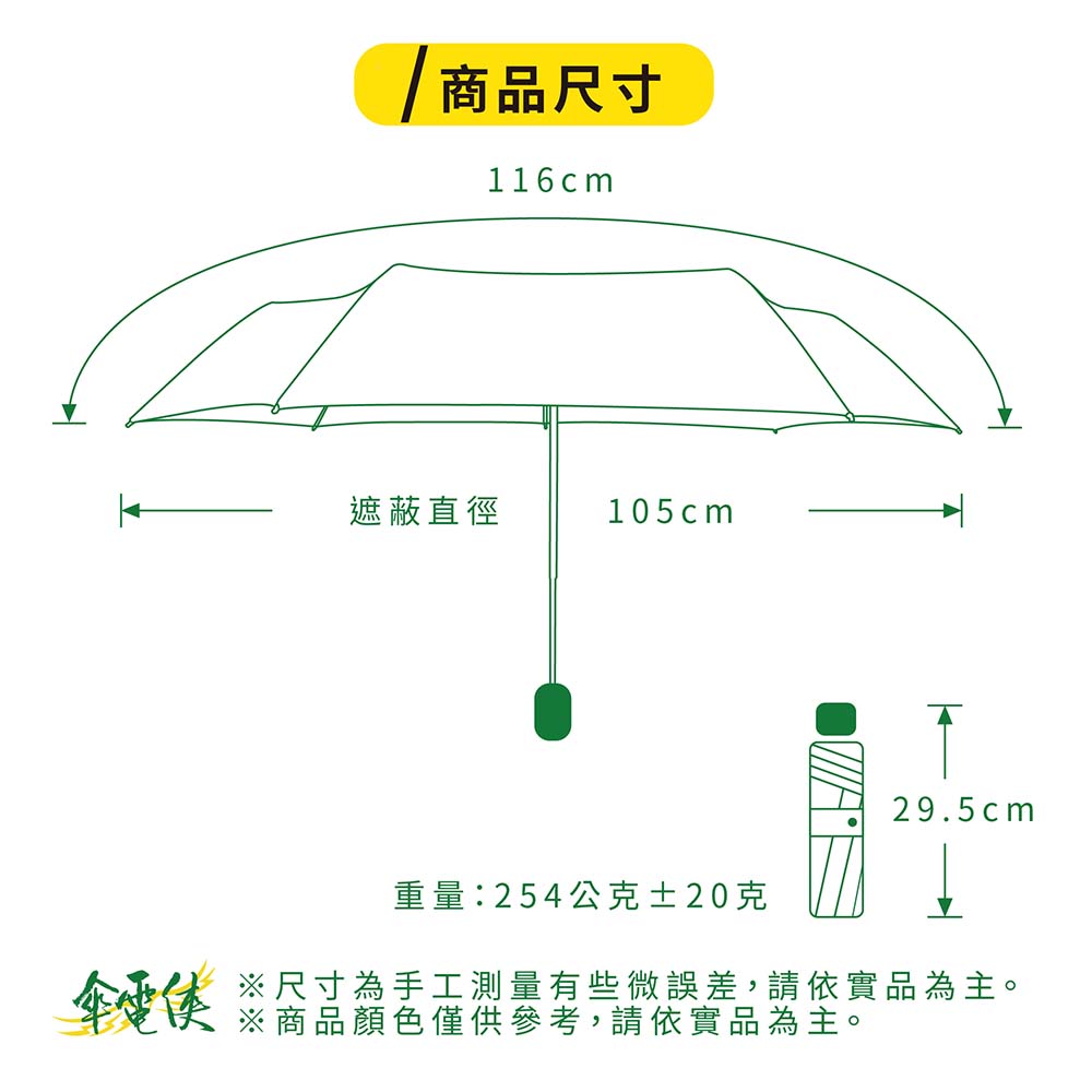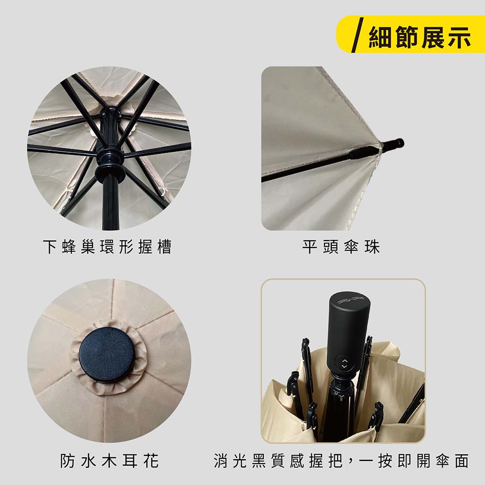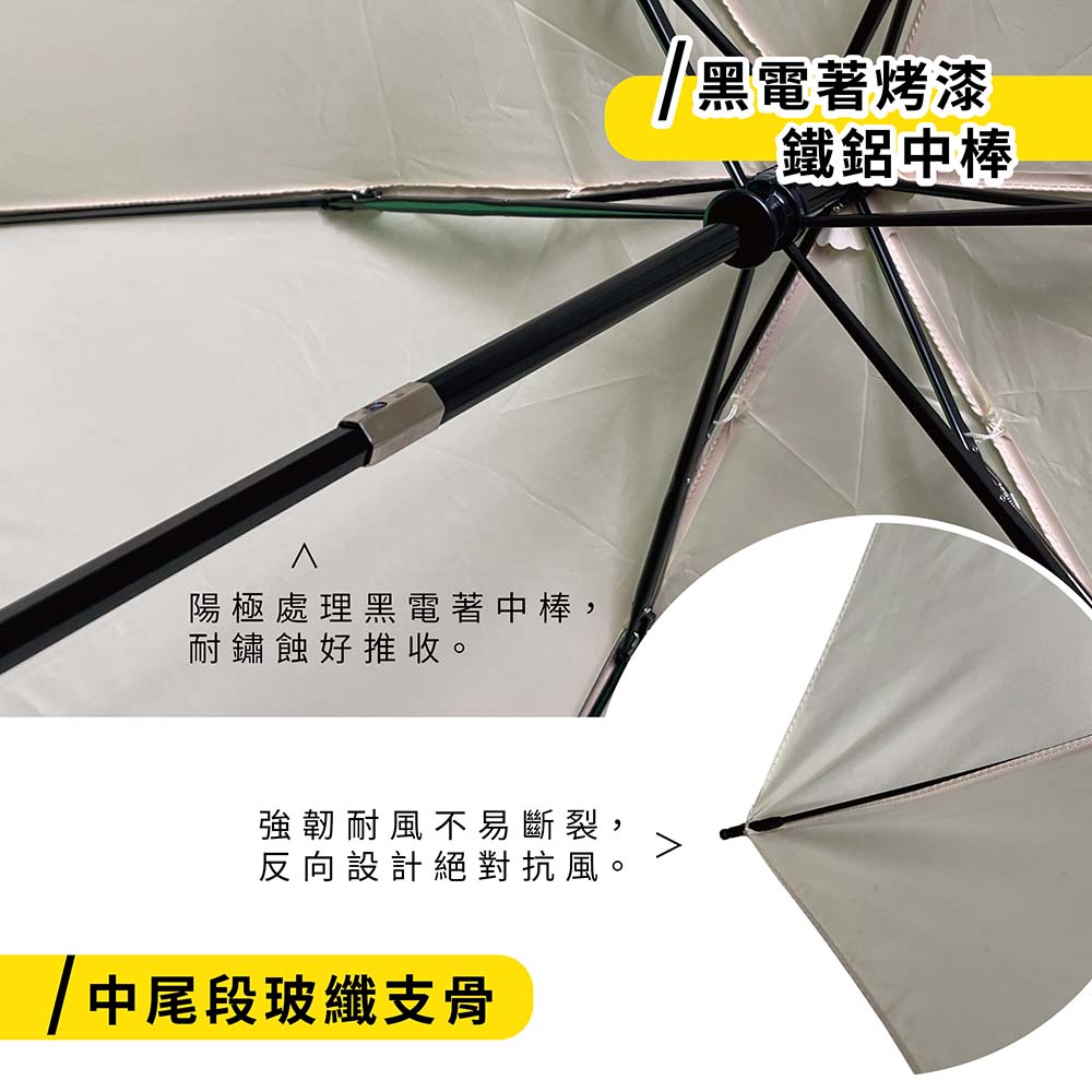 【小反骨】傘骨:58X6K鐵鋁+FRP玻纖骨傘布:99.5%抗紫外線 降溫7.9度 50Dx50Dx300T半光滌塔夫重量:254公克±20克收合長度:29.5cm展開直徑:105cm【小反骨.節節收反向傘】嶄新四色 耀眼登場🌂 一把真正懂你的傘——「小反骨」顛覆傳統,反向開收新革命!每次收傘總是被雨水滴得滿身濕?上車收傘總是卡卡不方便?你需要的是——【小反骨節節收反向傘】,讓雨水乖乖包在裡面,從此告別濕漉漉的困擾!✨ 四大特色 讓你一用就回不去:✅ 節節收反向設計獨特反向摺疊結構,收傘時濕面朝內、乾面朝外,雨水不再四處滴落!車內收放超順手,進出再也不狼狽。✅ 大傘面 × 超輕量 × 極細美型加大傘面全面遮雨,卻依然輕巧好攜帶;極細傘身設計,輕盈優雅不笨重,收納後細長好握,女生也能輕鬆放進包包。✅ 五級超撥水 桃皮布PRO進化登場採用最新開發「桃皮布PRO」,超撥水效果再進化!雨水接觸傘面瞬間凝聚成珠,一甩即乾,不殘留水漬。✅ 2300mm 超高耐水壓耐水壓高達2300mm,面對突如其來的豪大雨也滴水不漏,給你全天候的安心防護。🌈 嶄新四色 耀眼登場豆黃|溫暖療癒,雨天也能擁有陽光氣息灰綠|沉穩知性,低調中展現獨特品味靛紫|優雅神秘,一抹色彩點亮灰濛濛的城市烟青|質感滿分,霧感色調百搭不挑人🚗 無論是通勤、開車、步行,小反骨都是你最貼心的雨天夥伴!一把有態度、懂生活的傘,等你來體驗。#小反骨 #節節收反向傘 #反向傘革命 #桃皮布PRO #五級超撥水 #超高耐水壓 #雨天神器 #嶄新四色 #豆黃 #灰綠 #靛紫 #烟青