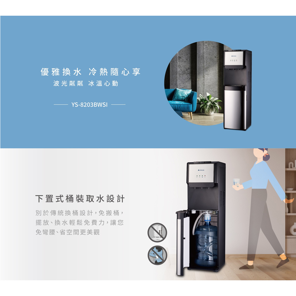 Yuanshan Bottom-Loading Barrel Water Dispenser with Hot, Warm, and Cold Functions YS-8203BWSI
