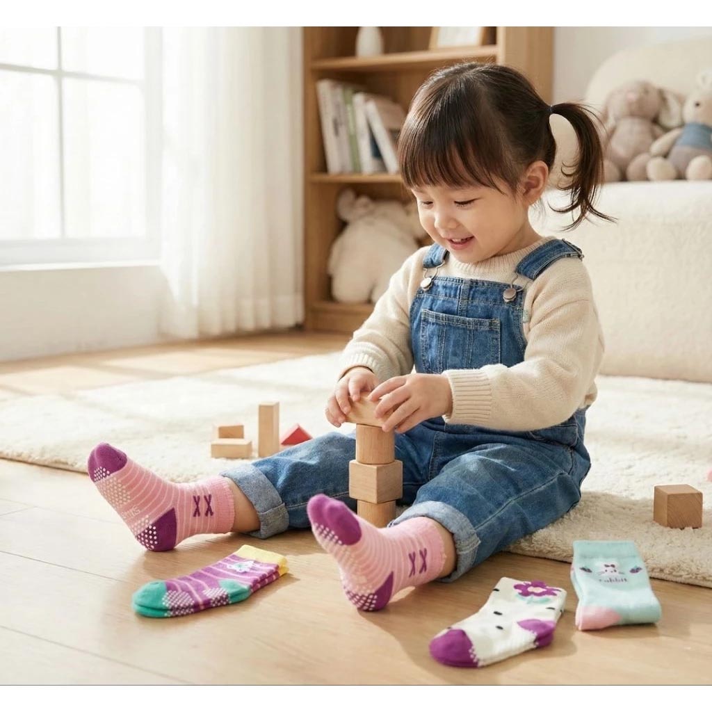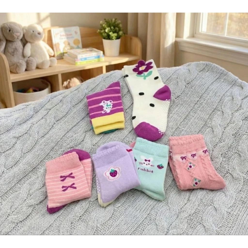 Kaimei Cotton Industry 10 pairs of random excellent pure cotton non-slip children's socks, cute pink style, animal children's socks, cartoon children's socks, cute socks, girls' socks, rabbit, small flower, fruit pattern, 9-13cm