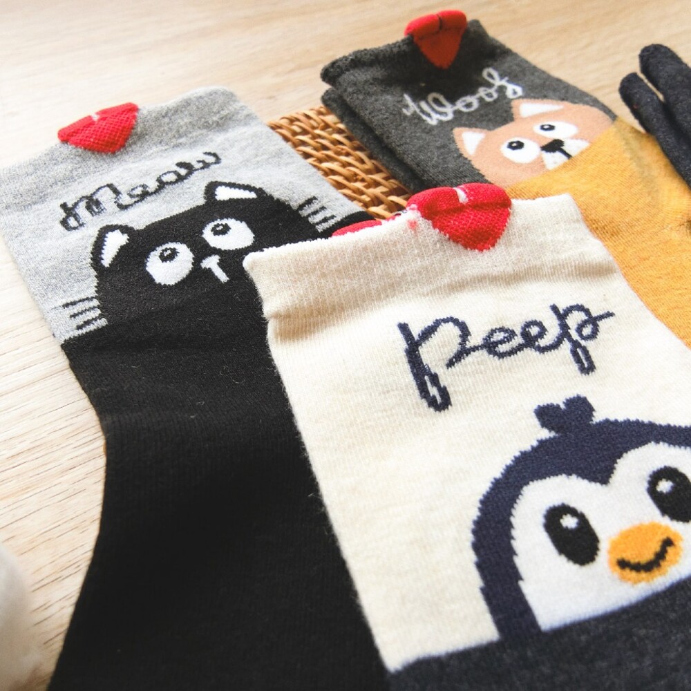 [Kaimei Cotton] 12 pairs of random excellent MIT Taiwan-made exquisite design pure cotton women's socks two-color animal style