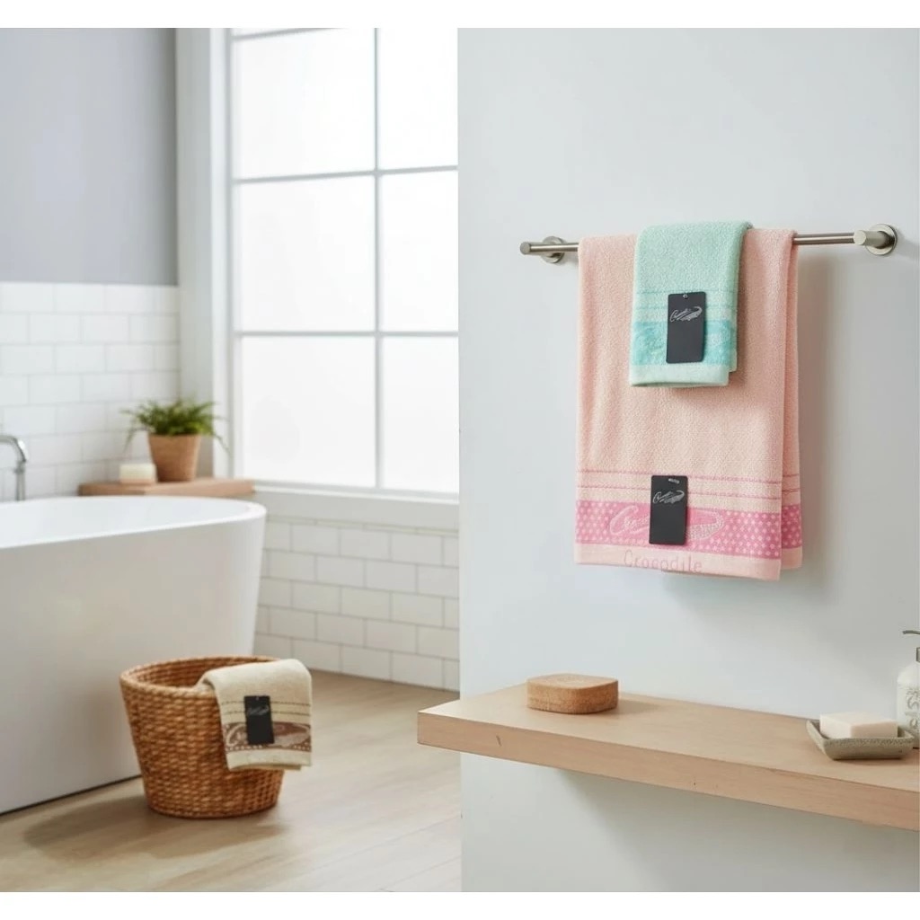 [Kaimei Cotton] 8-pack Random Excellent MIT Made in Taiwan Classic LOGO Crocodile Brand Pure Cotton Towel - Polka Dot
