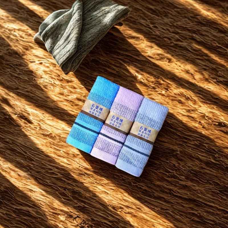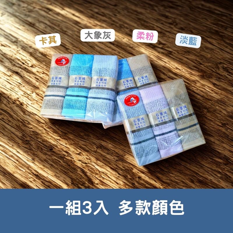 👍Kaimei Cotton Industry | Three packs of 9 pieces, made in Taiwan by MIT, top-grade black gold technology, 18 taels thin graphene deodorizing towel