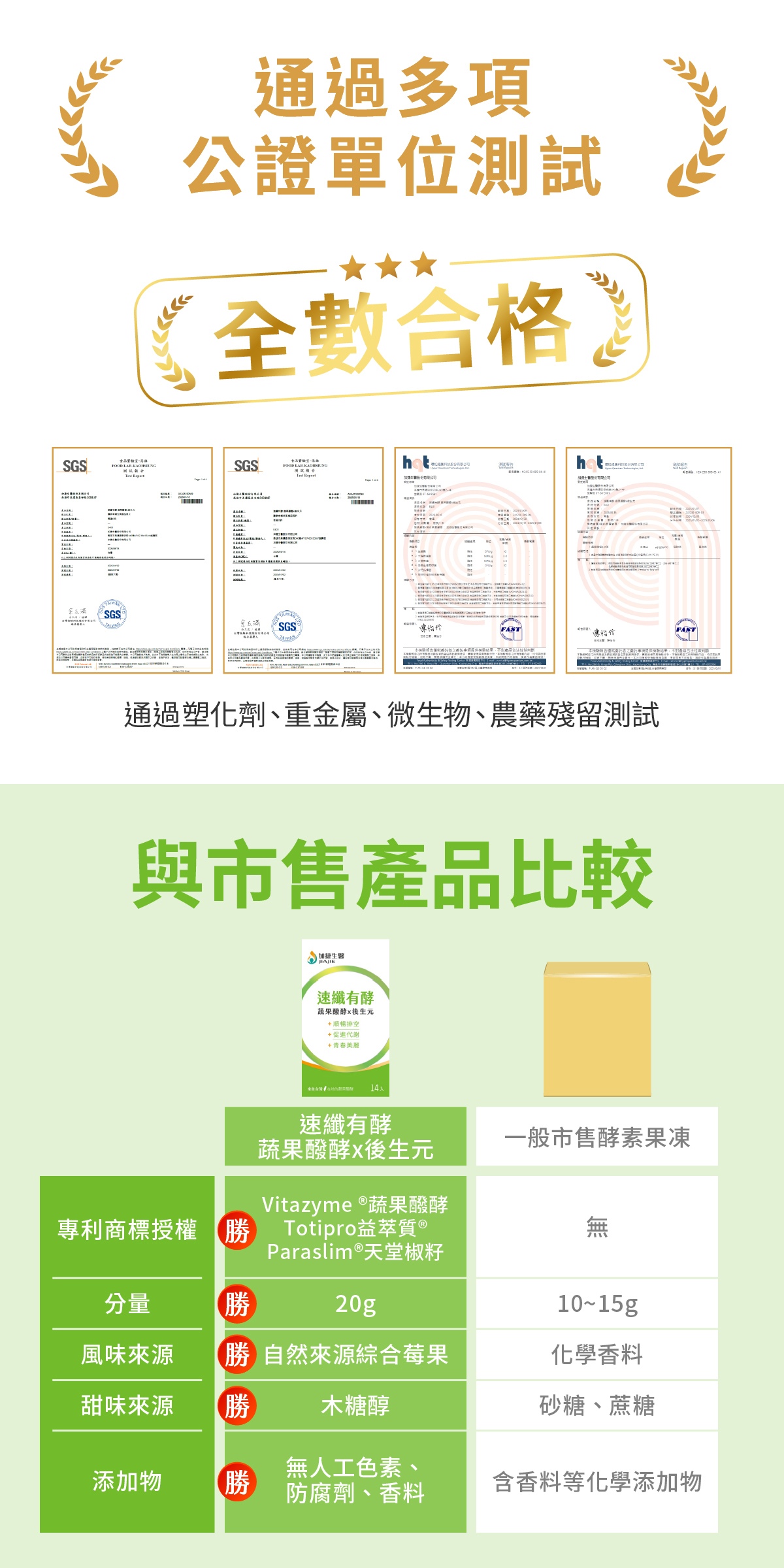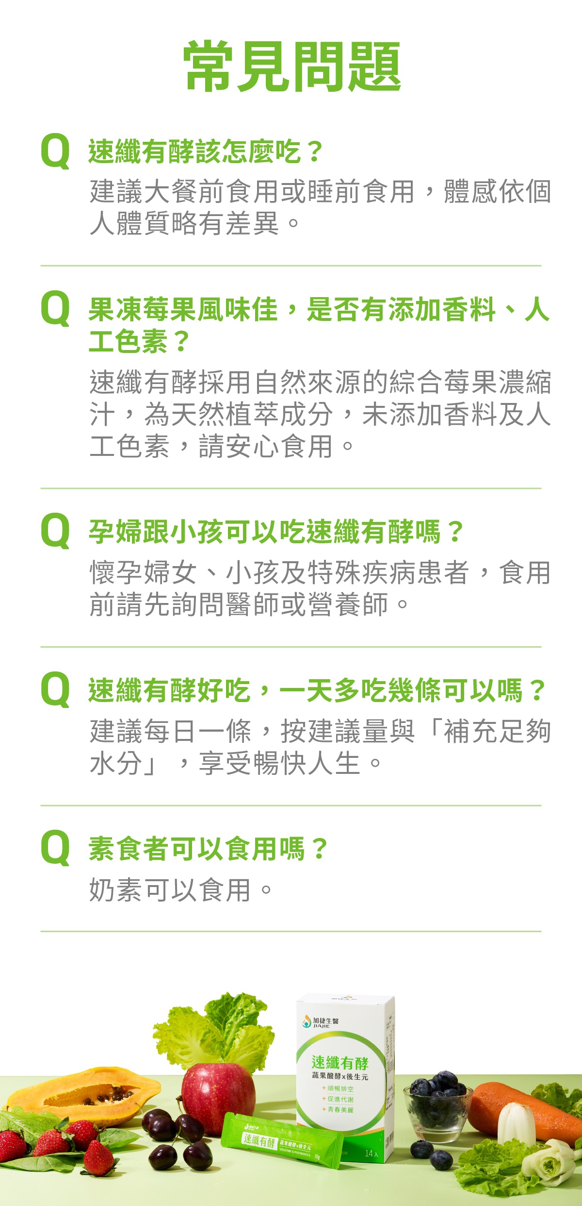 📍維持消化道機能,輕鬆順暢排空︳20種台灣在地蔬果精華︳540天專利蔬果醱酵Vitazyme®︳後生元Totipro益萃質®,調整消化道菌群︳天堂椒籽Paraslim®,促進新陳代謝︳豐富水溶性膳食纖維,幫助消化、更順暢關鍵成分:蔬果醱酵液、益萃質®規格:14包/盒,每包20公克劑型:果凍葷素別:奶素產地:台灣