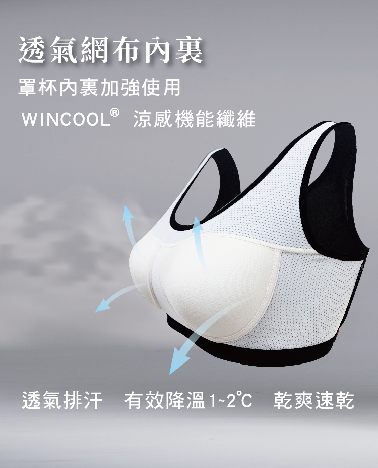 │混和素材最舒適│下胸易累積汗水處採用排汗紗,上胸流汗處產用涼感紗