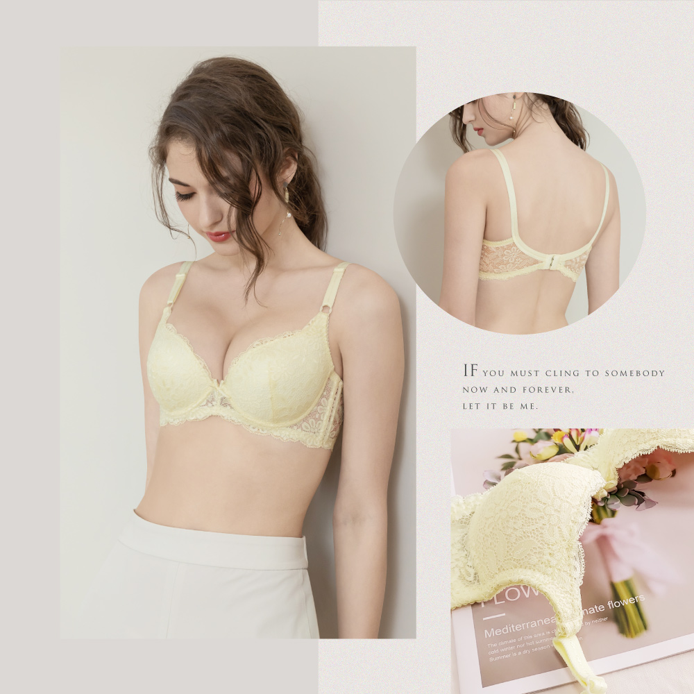 質感無痕雕花蕾絲,下厚上薄泡棉杯,創造渾圓胸型