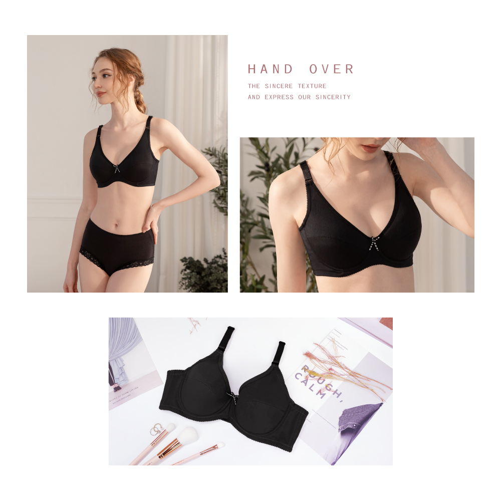【Clany可蘭霓】 舒適無痕全罩包覆大罩杯微乳 CD罩杯內衣 珍珠黑 6993-63