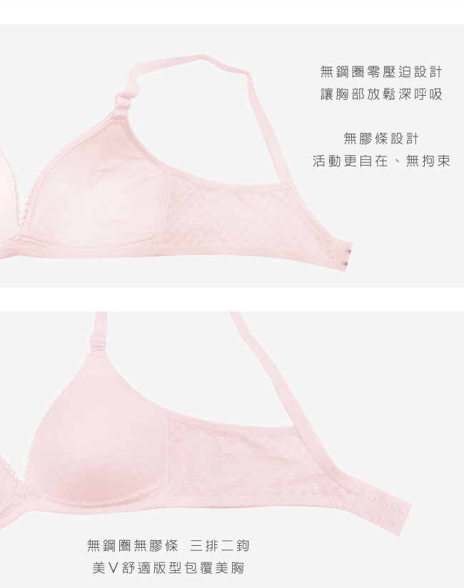 【Clany可蘭霓】 舒適V曲線無鋼圈台灣製輕柔 AB內衣 粉紅甜心 6607-31