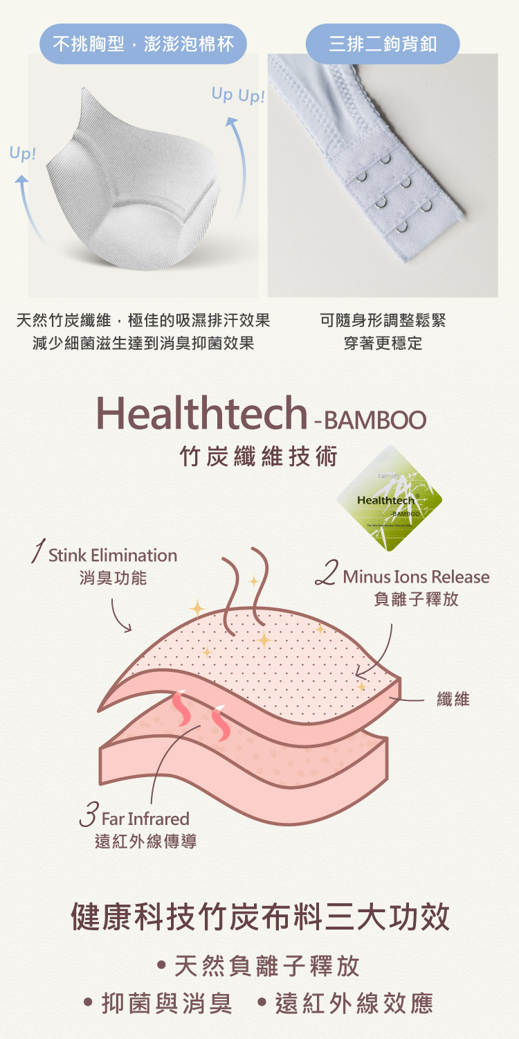 天然竹炭內裡,快速吸汗減少異味