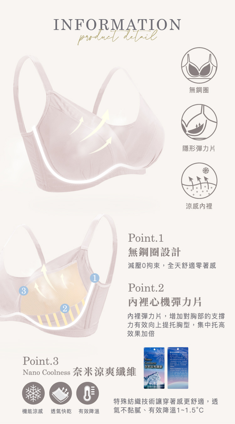 奈米涼爽內裡,有效降溫速乾不黏膩
