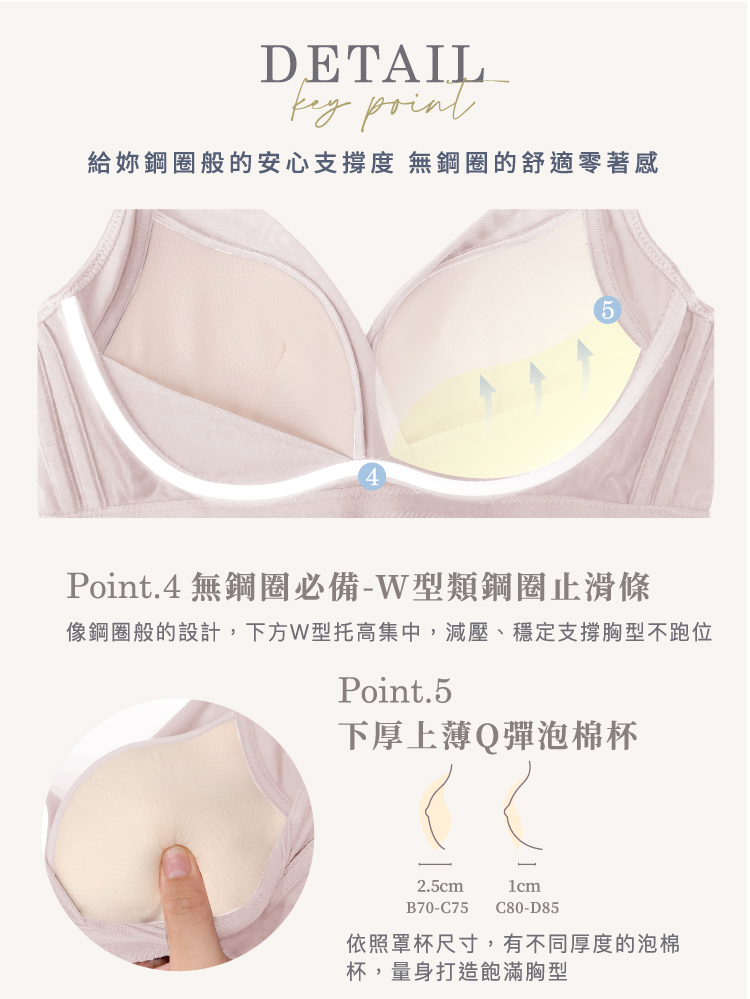 高脅邊+雙膠條,加強包覆惱人副乳