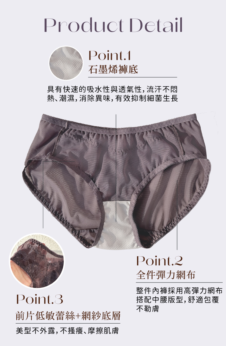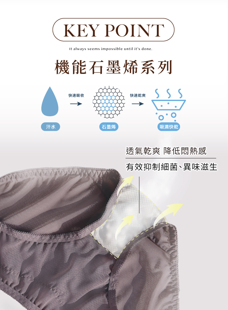 機能石墨烯褲底,抑菌消臭乾爽透氣