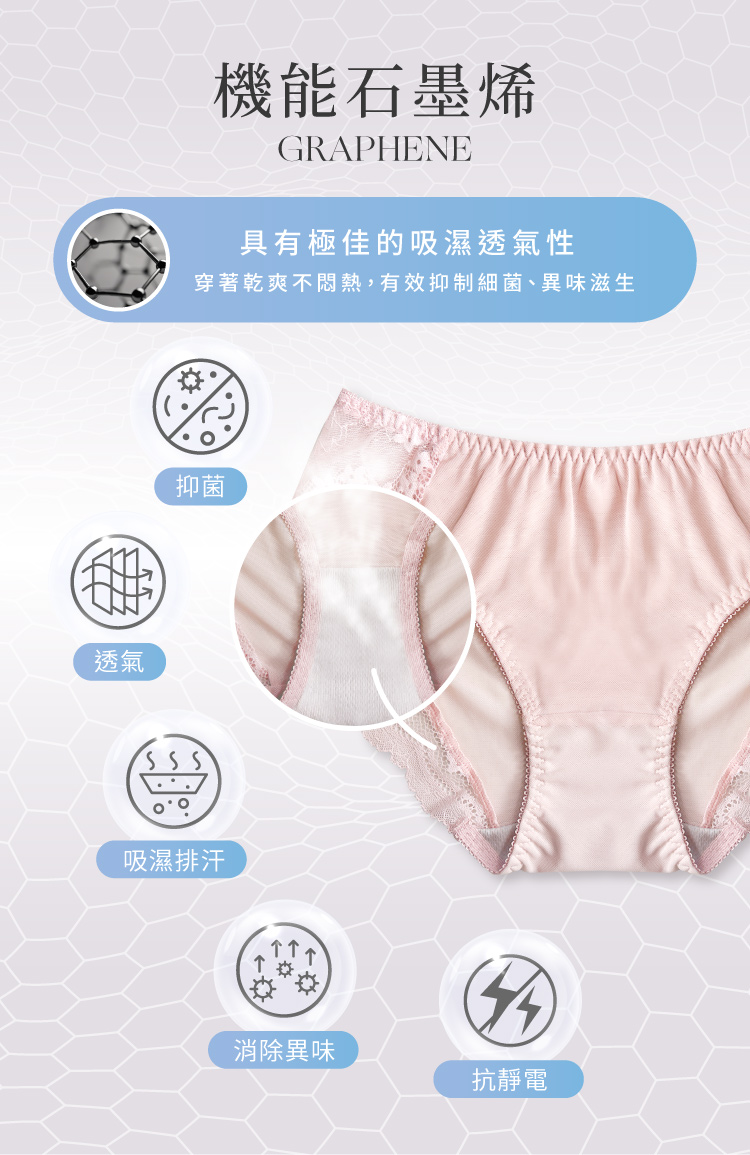 石墨烯抑菌褲底,長效抗臭無異味