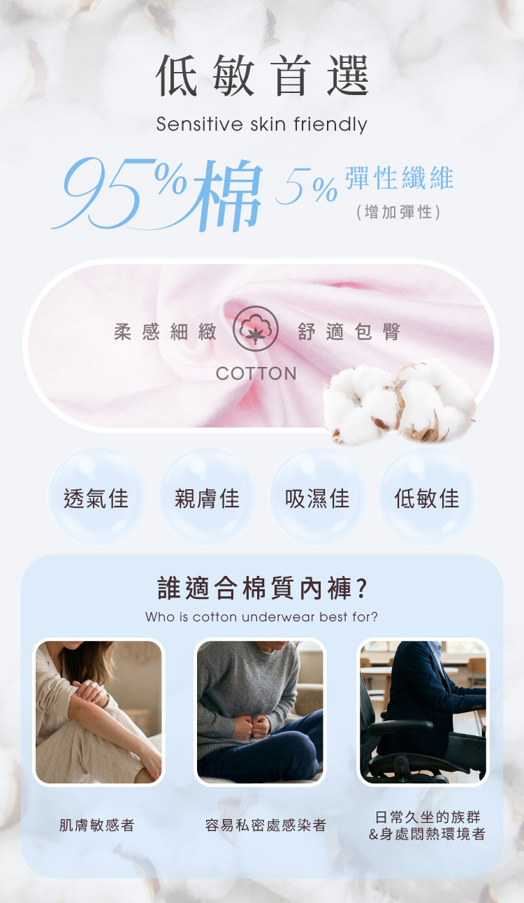 【Clany 可蘭霓】純棉長效抗菌中腰內褲 (M-2XL)|加大尺碼 透氣包臀 2237-51 雲朵藍