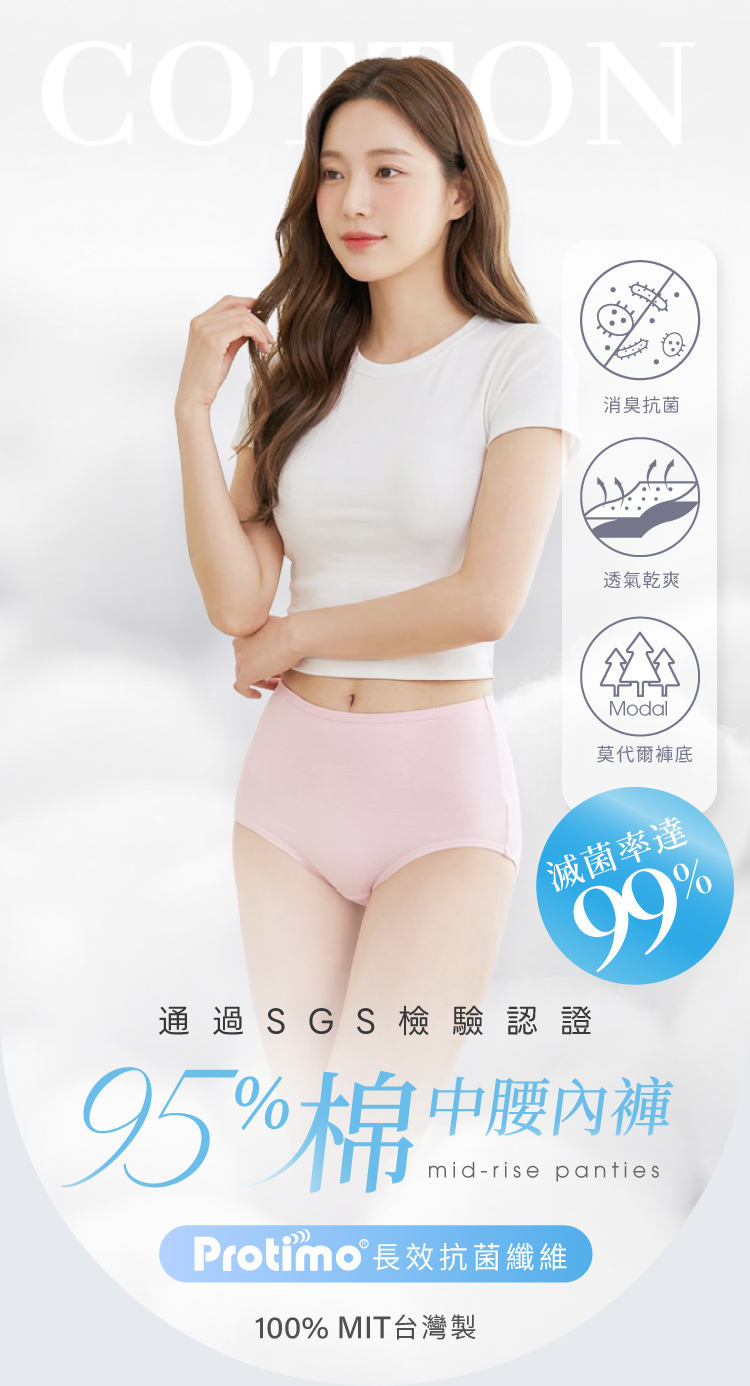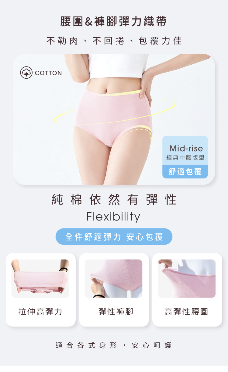 【Clany 可蘭霓】純棉長效抗菌中腰內褲 (M-2XL)|加大尺碼 透氣包臀 2237-31 櫻花粉