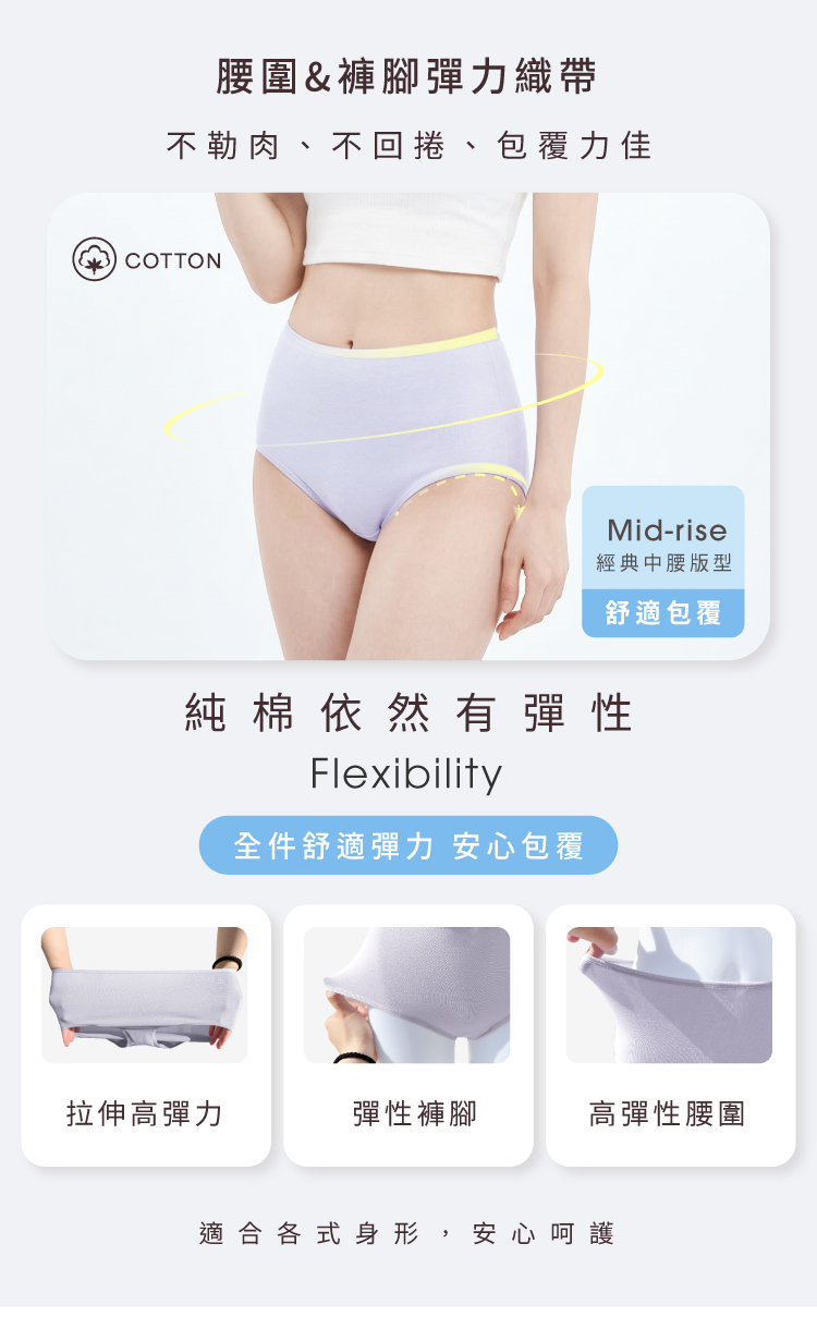 【Clany 可蘭霓】純棉長效抗菌中腰內褲 (M-2XL)|加大尺碼 透氣包臀 2237-61 丁香紫