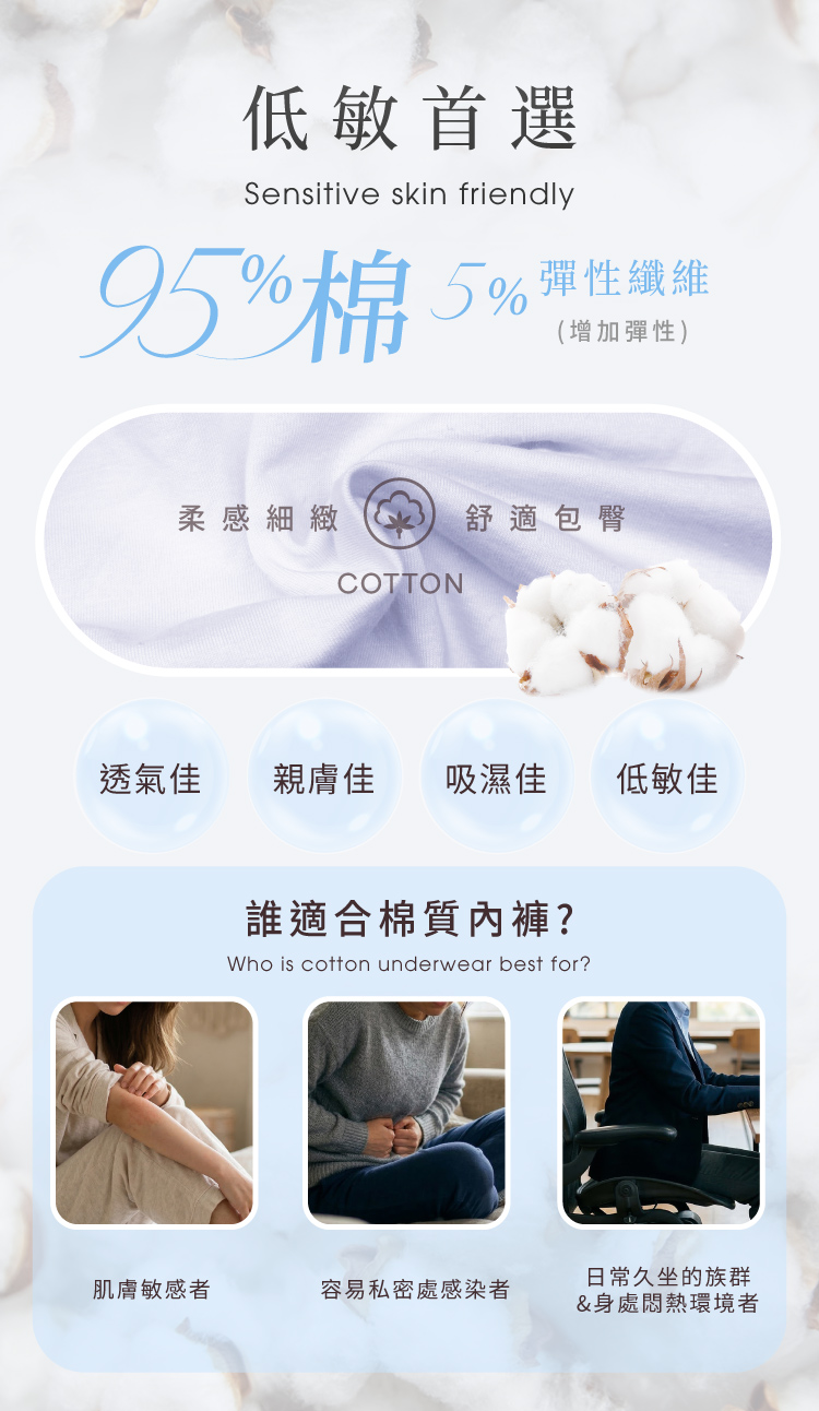 會呼吸的布料,95% 高純棉黃金比例