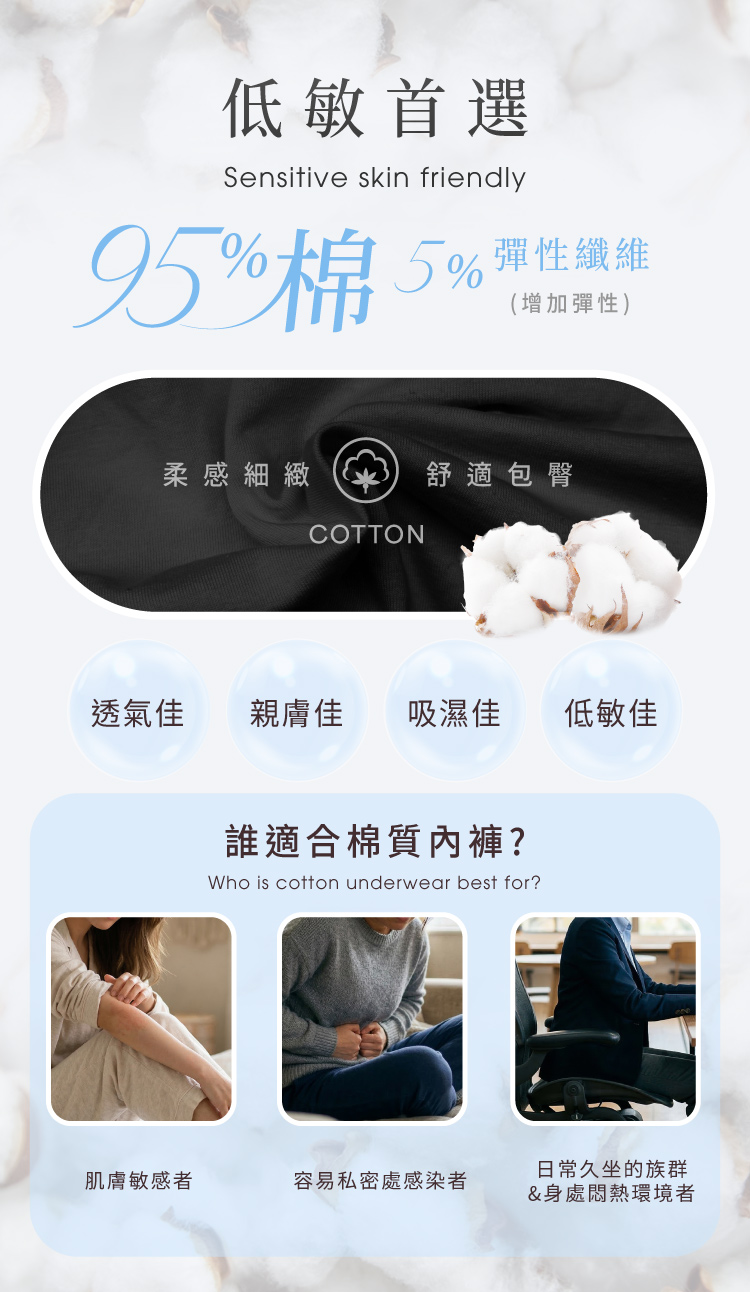 會呼吸的布料,95% 高純棉黃金比例
