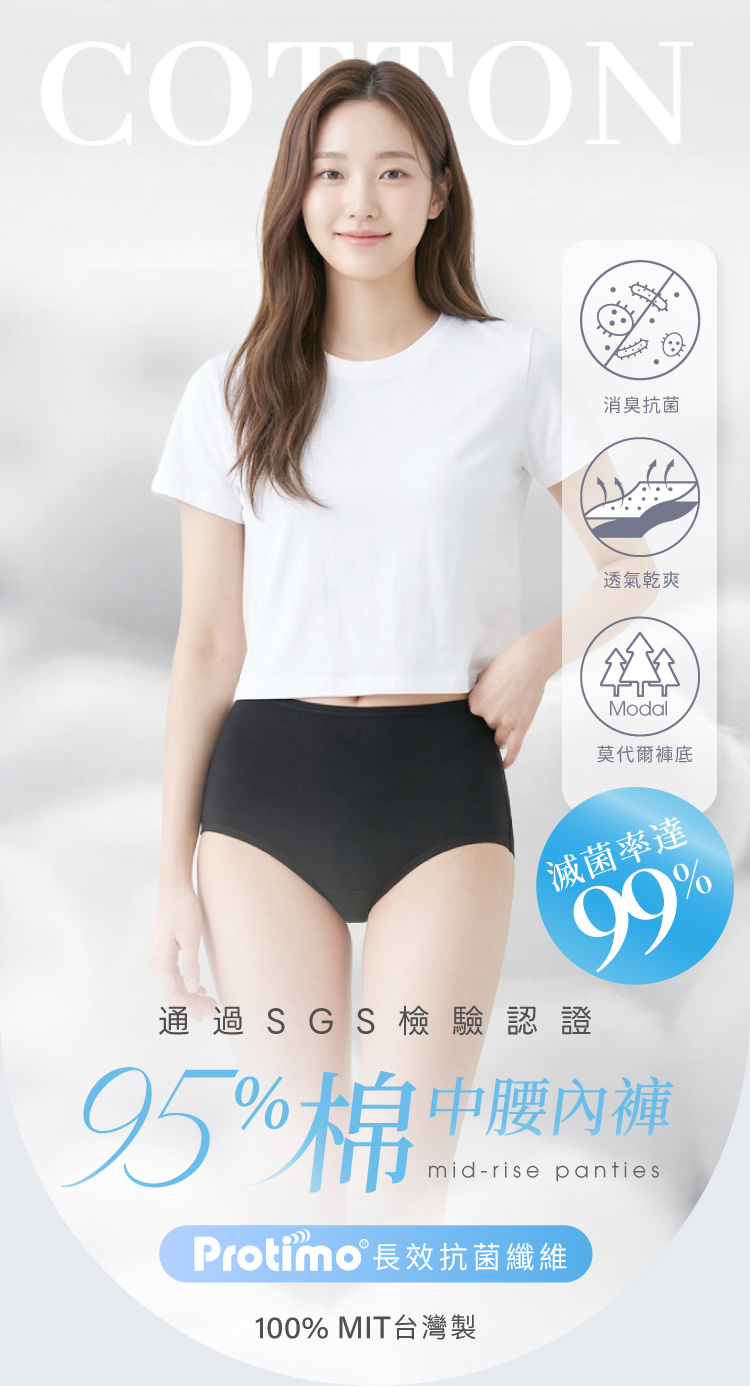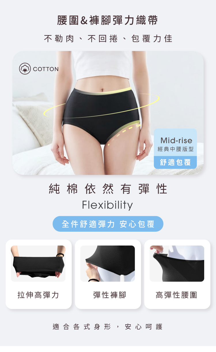 【Clany 可蘭霓】純棉長效抗菌中腰內褲 (M-2XL)|加大尺碼 透氣包臀 2237-63 百搭黑