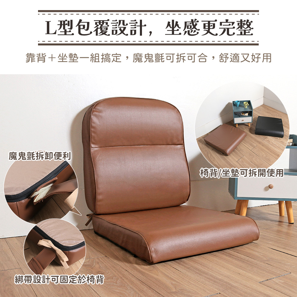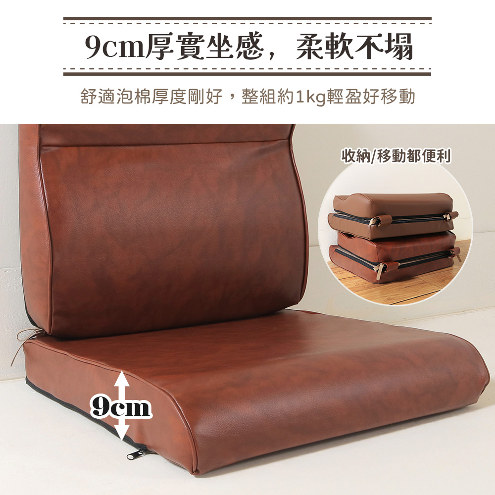 #坐墊 #椅墊 #沙發椅墊 #木椅墊◆產品特色(1)附綁帶,可固定在椅背上(2)可堆疊,收納方便(3)適用木椅、和室坐墊,椅背、椅坐可拆開使用(4)全開式拉鍊設計(5)台灣生產、製造◆尺寸: (背墊)背高58cm*背寬55cm*厚約11cm(坐墊)坐深55cm*坐寬55cm*厚約9cm(綁帶)長約25cm(綁帶加長20公分一組+100元)(以上規格為人工丈量會有微誤差約正負2公分內)◆材質:PVC皮◆内容物: 舒適泡棉 ◆顏色: 雲紋咖/淺咖/黑咖◆產地: 台灣 ◆ 重量:約 1 公斤(人工丈量誤差約正負0.5公斤)※小叮嚀: (1)皮面布套建議勿拆洗,可局部擦拭清潔,增長產品使用年限【關於運費】