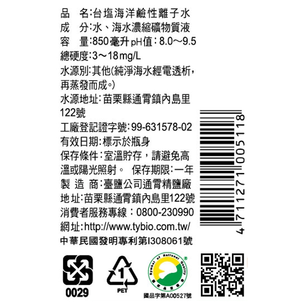 ◎Brand:台鹽 ◎Specifications: 850ml毫升 x 1 x 4Bottle瓶
