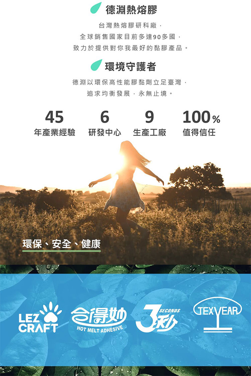 【商品特色】 台灣製、環保、安全膠條首推品牌● 台灣第一大熱熔膠製造廠、無雜質、不黃變● 適合塑膠、陶瓷、金屬等接著● 居家修繕、生活智慧必備● 台灣第一大熱熔膠製造廠,全球9座工廠、行銷分佈90多國!廠商代號:2M3責任代號:QMW